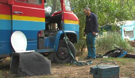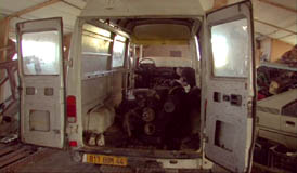 Au fond du jardin chez David, l'un des engins les plus improbables. Journ�e ensoleill�e, nous r�dons autour du trou b�hant qui devra un jour inch Amar, loger un moteur. Aid� de Fred, son nouvel homme de main �videmment baptis� Aldo, il en teste plusieurs types, ceux qui n'y trouveront pas leur place attendront dans le coffre d'�tre vendus au Maroc.